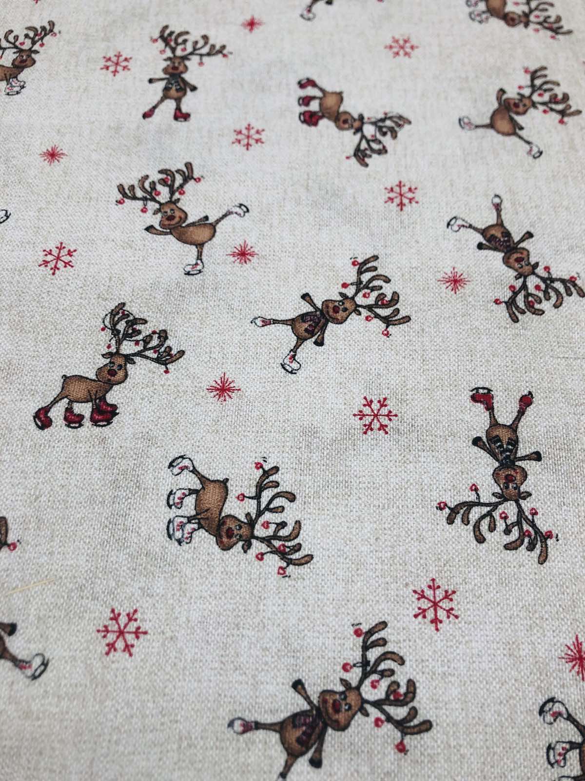 Φάρδος- 2.80. 70% cot 30% pol. Ύφασμα λονέτα, λεπτό καραβόπανο, με χριστουγεννιάτικα σχέδια. Ιδανικό για γιορτινά τραπεζομάντηλα, μαξιλάρες, κουρτίνες μερικής σκίασης και άλλες διακοσμήσεις. Ύφασμα με το μέτρο. Η τιμή κοπής είναι ανά μέτρο. Ελάχιστο μήκος υφάσματος (1m).